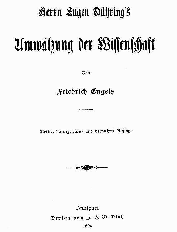 O livro é uma resposta ao filósofo Eugen Dühring, que havia produzido a sua própria versão de socialismo, com a intenção de substituir o marxismo. Engels assumiu a elaboração desse escrito, no entanto, o Marx ajudou na elaboração da parte de Economia Política. Como Engels escreveu a Marx, o livro é uma tentativa "de produzir um levantamento enciclopédico de nossa concepção dos problemas filosóficos, científico-naturais e históricos." |
